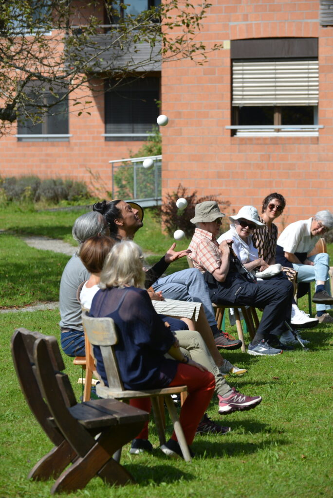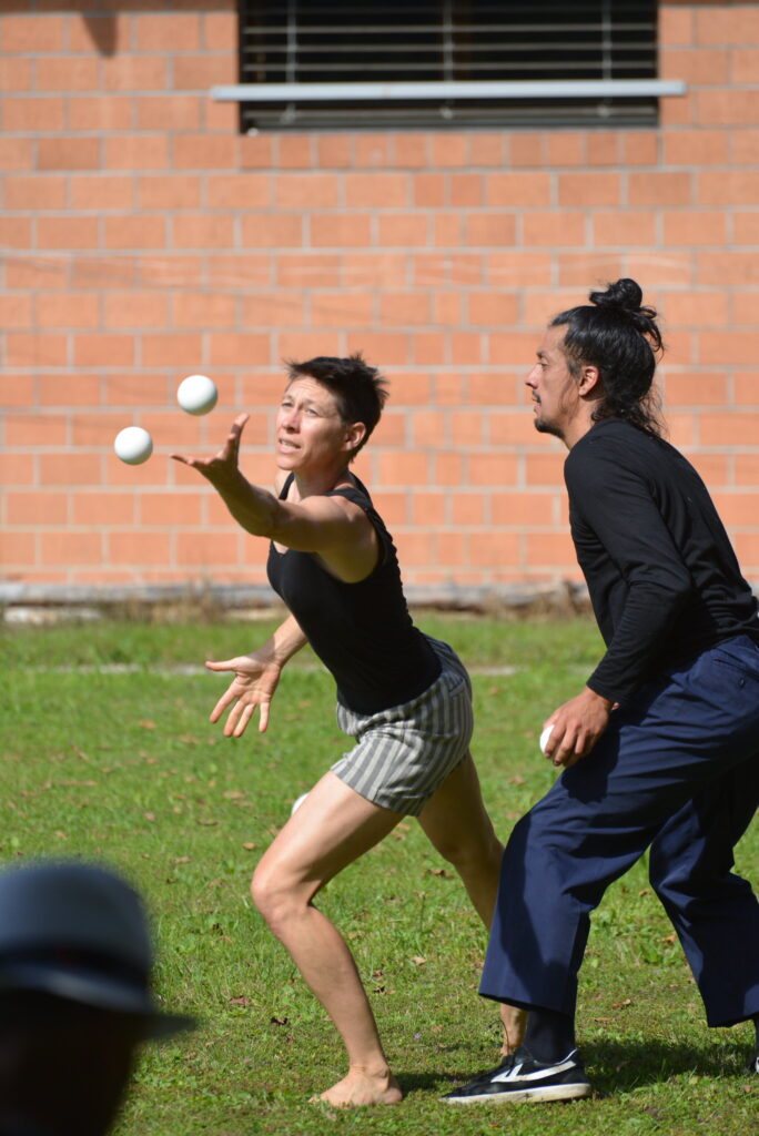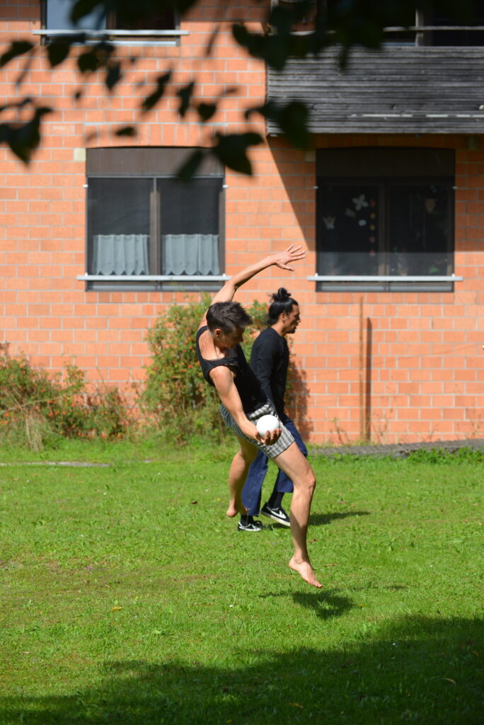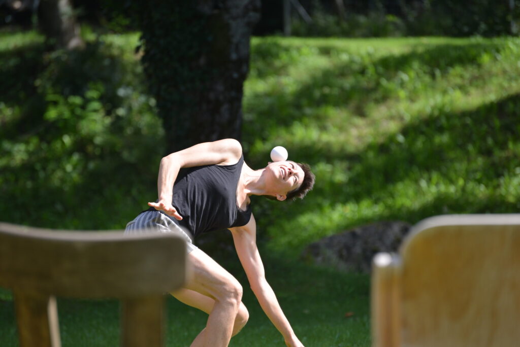 La jonglerie avec des balles, tout comme les éléments de contact et d’acro-danse, sont présents dès le début — non pas comme une démonstration de virtuosité, mais comme un véhicule expressif.